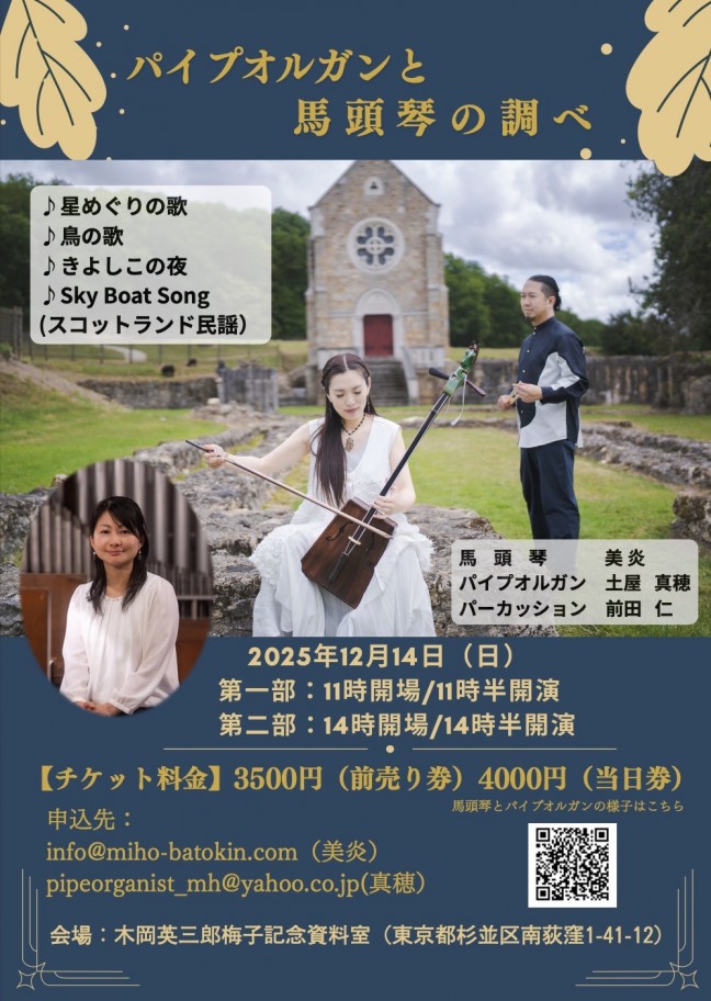 馬頭琴・パイプオルガン・パーカッション ライブ | |